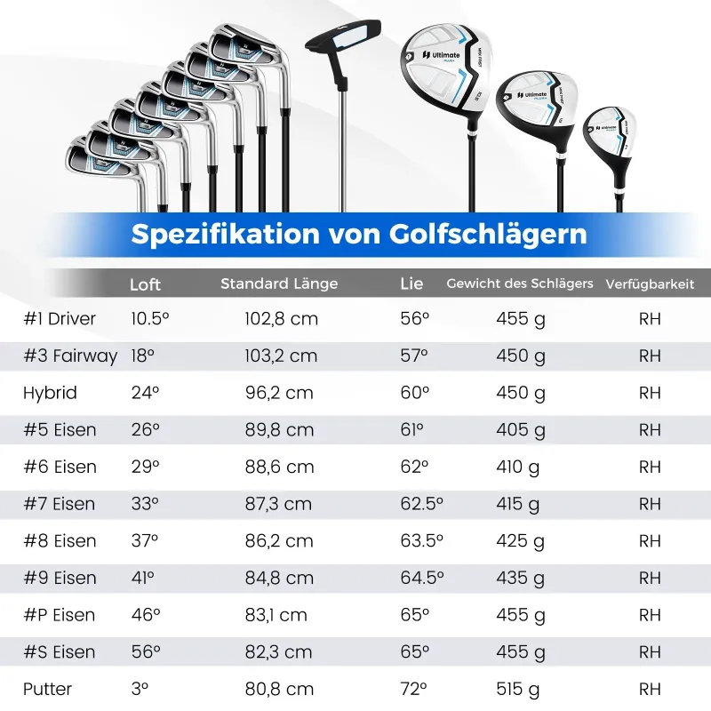 Zlepšete svou golfovou hru s touto 15dílnou kompletní sadou pro muže. Tato sada golfových holí, vybavená vysoce výkonnými dřevy, železy a mallet putterem s kvalitními shafty a gripy, je ideální pro začátečníky i zkušené hráče. Přiložený bag na stojan zajišťuje maximální pohodlí díky nastavitelným ramenním popruhům a několika kapsám, včetně vodotěsné kapsy na cennosti. Golfový set je ideální pro zlepšení vaší hry a pohodlné hraní golfu. Vlastnosti: - golfový set je vhodný pro všechny hráče, kteří chtějí hrát golf: Tento 15dílný kompletní golfový set pro muže obsahuje driver č. 1, fairwayové dřevo č. 3, hybrid, kompletní sadu želez (č. 5 č. 6 č. 7 č. 8 č. 9 č. P č. S), putter, 3 obaly na hole a stand bag s obalem proti dešti. Je připraven k použití a podpoří vaši golfovou hru ihned po vybalení z krabice. Vysoce výkonná dřeva: Dřeva v této golfové sadě, včetně driveru č. 1 o objemu 460 cm3, jsou vybavena hlavami z hliníkové slitiny a lehkými grafitovými shafty a jsou navržena pro přesnost a vzdálenost. Velká plocha driveru poskytuje vysokou míru odpustnosti při úderech mimo střed a zlepšuje váš výkon při každé ráně. Navrženo pro kontrolu & amp; vzdálenost: Železa mají konstrukci s dutým hřbetem a nízkým těžištěm, což zlepšuje odpustnost a stabilitu. Drážky na líci poskytují lepší kontrolu a přesnost, zatímco pružné grafitové shafty umožňují větší rychlost. Přesný putter: Putter Mallet má hlavu hole ze zinkové slitiny, robustní ocelový shaft, protiskluzovou rukojeť a zarovnávací čáry pro větší přesnost. Toto nastavení podporuje konzistentní, přesné putty a zlepšuje vaši krátkou hru. Propracovaný bag na stojánek: Golfový bag se snadno přenáší díky nastavitelným dvojitým popruhům na přenášení. Pětidílná přepážka na hole chrání a organizuje vaše hole, zatímco 5 kapes na zip - včetně vodotěsné kapsy na cennosti - poskytuje dostatek úložného prostoru. Vlastnosti: Kompletní sada se 3 dřevy, 7 železy a putterem Nízko položené těžiště pro stabilní údery Všechna dřeva a železa s grafitovými shafty Putter Mallet se zarovnávacími čarami pro lepší přesnost Protiskluzové rukojeti pro lepší kontrolu míčku Několik kapes včetně voděodolné kapsy na cennosti Dlouhá kapsa a 2 přední kapsy pro různé úložné potřeby S držákem na deštník, držákem na ručník a držákem na rukavice Přenosný golfový bag se 3 horními držadly a polstrovanou rukojetí pro přenášení