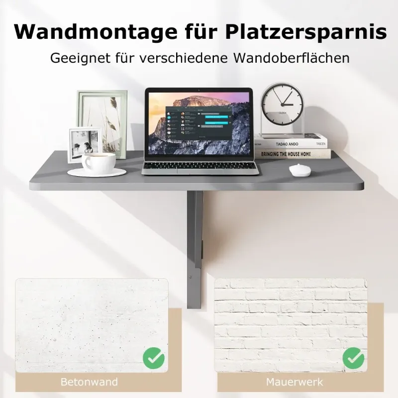 S naším skládacím stolem, který šetří místo, si vytvoříte maximálně univerzální pracovní prostor. Jeho inovativní konstrukce nabízí 3 nastavitelné režimy pro maximální přizpůsobení. Vychutnejte si odolnost pevné konstrukce a vysoce kvalitních materiálů - trojúhelníková konstrukce poskytuje spolehlivou oporu a konstrukce z masivního dřeva zajišťuje dlouhou životnost. Velkorysá pracovní plocha vám umožní uložit potřebné věci na dosah, zatímco univerzální kompatibilita se bez problémů hodí do jakéhokoli interiéru. Zvyšte svou produktivitu díky snadnému čištění a uživatelsky přívětivým funkcím, jako jsou zaoblené rohy. Atributy: 1: Prostorově úsporný skládací stůl: objevte dokonalou konfiguraci - rozložený pro maximální pracovní prostor, napůl složený pro kompaktní vzhled a plně složený pro uvolnění potřebného místa na podlaze. Stůl si snadno přizpůsobíte tak, aby vyhovoval vašemu pohodlí a potřebám. Robustní konstrukce a vysoce kvalitní materiály: Užijte si bezkonkurenční stabilitu díky trojúhelníkové konstrukci, která poskytuje pevnou oporu, zatímco konstrukce z masivního dřeva je zodpovědná za dlouhou životnost a vysokou nosnost. Investujte do kvality, která předčí všechna očekávání. Velkorysá pracovní plocha: Díky prostorné desce stolu o rozměrech 80 cm x 53 cm můžete snadno uložit notebook, šálky s kávou, knihy, dokumenty i rostliny v květináčích a mít všechny důležité věci na dosah. Zvyšte svou produktivitu díky uklizenému pracovnímu prostředí. Univerzální kompatibilita: Tento skládací stůl je navržen tak, aby bez problémů zapadl do jakéhokoli prostředí, a je vhodný pro různé povrchy stěn, včetně betonových a cihlových zdí. Užívejte si pohodlí univerzálního a přizpůsobitelného pracovního místa. Vylepšená funkčnost: Stůl lze bez námahy čistit díky snadno čistitelnému hustému povrchu odolnému proti opotřebení, který si zachovává neporušený vzhled i po každodenním používání. Zaoblené bezpečnostní rohy mohou chránit vás i vaši rodinu, zatímco pružné kovové panty zajišťují snadné skládání. Vlastnosti: Skládací stůl se 3 režimy pro různé potřeby Masivní dřevo pro dlouhotrvající použití a trojúhelníková konstrukce poskytují stabilní oporu Velkorysá stolová deska (80 x 53 cm) pro velkou pracovní plochu Nastavovací knoflík pro pohodlné a snadné přendávání Univerzálně kompatibilní s různými povrchy stěn Snadno čistitelný a opotřebení odolný povrch pro rychlou údržbu Zaoblené bezpečnostní rohy pro ochranu
