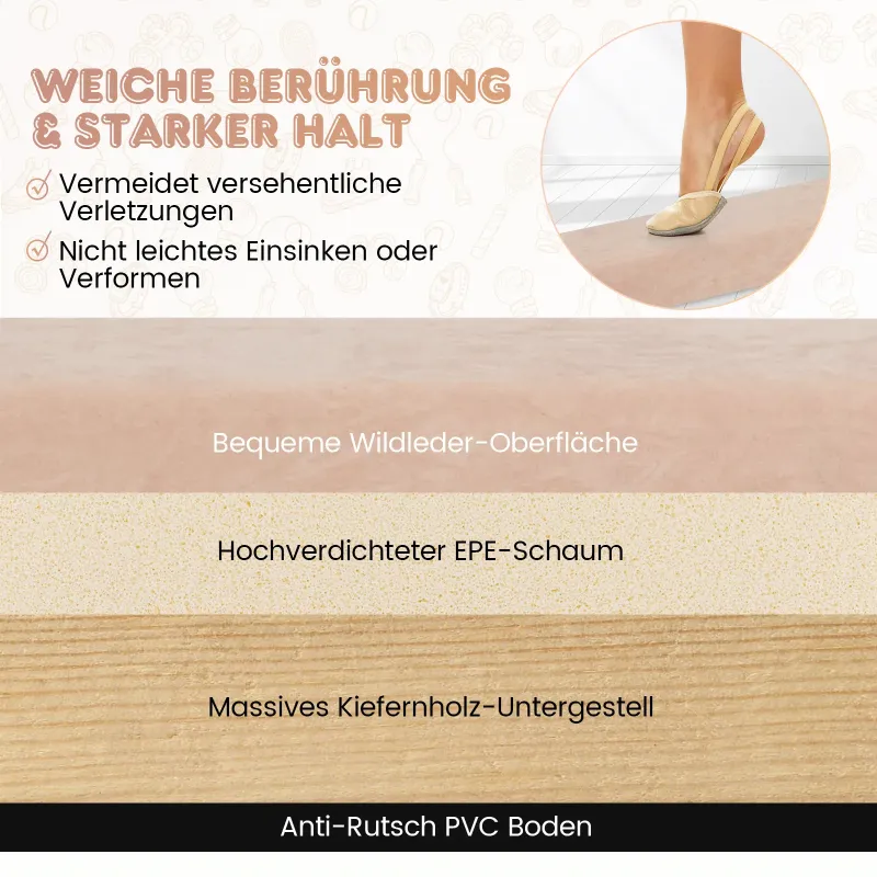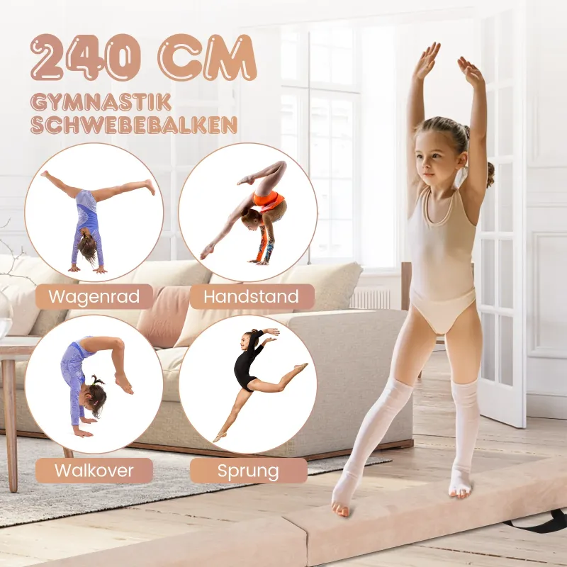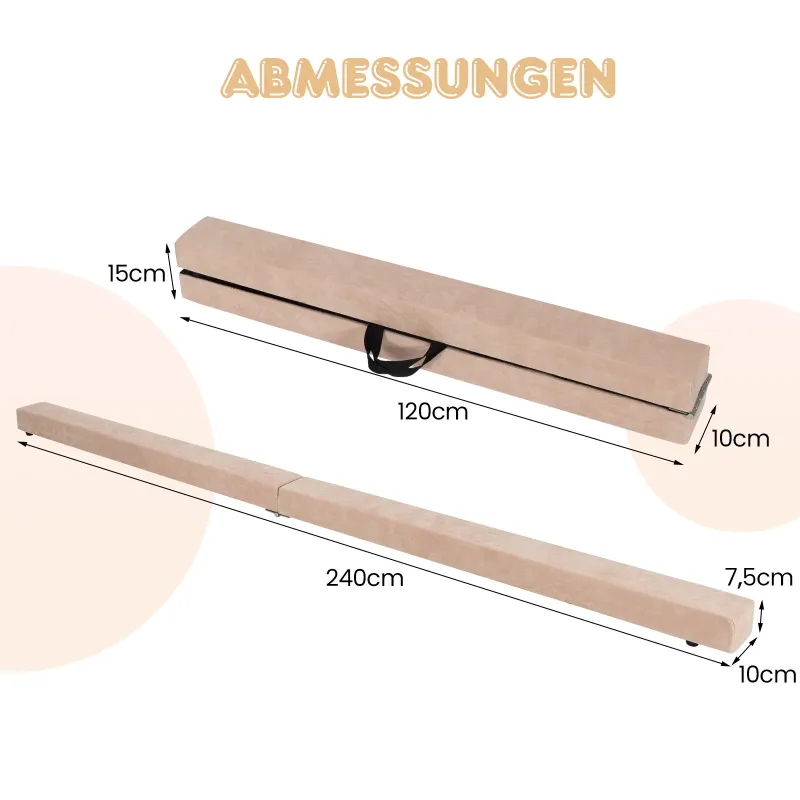 Pozdvihněte gymnastické tréninky vašich dětí na vyšší úroveň s touto skládací kladinou o délce 240 cm! Tato gymnastická kladina je vybavena jádrem z EPE pěny pro konzistentní oporu a pohodlí. Je zabalena v měkkém semišovém potahu a poskytuje pohodlný a protiskluzový povrch pro všechny typy gymnastů, od začátečníků až po pokročilé. Robustní základna z masivního dřeva zajišťuje stabilitu během používání, zatímco protiskluzová PVC podložka a nožičky zabraňují nežádoucímu pohybu, čímž zvyšují bezpečnost tréninku. Vlastnosti: Měkký dotek a silná opora: Tato kladina je vyrobena z EPE pěny s vysokou hustotou a základny z masivního borovicového dřeva a nabízí mladým sportovcům pevný, ale pohodlný povrch. Příjemný semišový povrch navíc poskytuje vynikající přilnavost, která zabraňuje uklouznutí. Zvýšená bezpečnost: Výplň z EPE pěny poskytuje dostatečné odpružení pro oporu chodidel a zabraňuje tak náhodným zraněním během tréninku. Kladina má navíc protiskluzovou PVC základnu a protiskluzové nožičky, které kladinu pevně upevňují k podlaze. Skládací a přenosná konstrukce: Tato gymnastická kladina je spojena s vysoce kvalitním pantem z nerezové oceli a lze ji složit do kompaktních rozměrů pro snadné skladování. Navíc je lehká a má vestavěné rukojeti pro snadné přenášení. Ideální pro všechny úrovně: Tato gymnastická kladina o délce 240 cm je ideální pro gymnasty všech úrovní dovedností. Je vhodná pro nácvik různých gymnastických manévrů, jako jsou přemety, stojky na rukou, salta, přeskoky a další. Perfektní dárek pro děti: Tato skládací gymnastická kladina je skvělým gymnastickým vybavením pro vaše dítě, které mu pomůže zlepšit rovnováhu, posílit svaly, zvýšit soustředění a posílit sebevědomí. Je navržena pro spolehlivé a dlouhotrvající používání. Vlastnosti: Pěna EPE s vysokou hustotou se snadno neprohýbá ani nedeformuje. Masivní dřevěná základna poskytuje silnou oporu a stabilitu. Měkký semišový potah poskytuje extra pohodlí. Protiskluzové dno a nožičky zajišťují bezpečnost během tréninku. Skládací konstrukce umožňuje snadné skladování a přepravu. 2 rukojeti pro snadné přenášení. Vhodné pro domácí trénink nebo gymnastické kluby. Ideální pro začátečníky i profesionály.