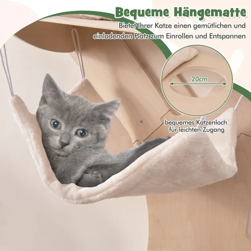 Pořiďte si tento nástěnný kočičí strom, aby byla vaše kočka šťastná! Naše nástěnná věž pro kočky má rozkošnou strukturu ve tvaru stromu, která promění váš prostor na hřiště pro vaše chlupaté společníky. Je vybavena útulnou houpací sítí pro odpolední zdřímnutí, 4 plošinami s měkkými polštáři, které jsou ideální pro relaxaci, a velkou podložkou pro škrábání pro udržení zdraví drápů. Škrábací plochy jsou navíc vyrobeny z přírodního sisalu, který je odolný vůči poškrábání, bezpečný a zdravotně nezávadný. Polstrované polštáře jsou pokryty plyšovým potahem šetrným k pokožce, který vašim milým kočkám poskytuje teplo a maximální pohodlí. A polštáře jsou odnímatelné a lze je prát v pračce pro snadnou údržbu. Přineste vzrušení a pohodlí do života vašeho domácího mazlíčka a zároveň vylepšete estetiku vašeho domova! Vlastnosti: Pohodlná místa k odpočinku: Tento 5-patrový nástěnný kočičí strom obsahuje pohodlnou houpací síť pro relaxaci a pohodlný otvor pro kočky pro snadný přístup. Obsahuje také 4 plošiny s čalouněnými polštáři, které zvou kočky na odpočinek, hru a pozorování okolí na různých úrovních. Bezpečné a spolehlivé materiály: Wall park je vybaven velkou škrábací podložkou z přírodního sisalu, která je odolná vůči škrábancům a opotřebení a podporuje zdravé návyky škrábání. Kromě toho je rám vyroben z hrubých překližkových panelů a poskytuje stabilitu a odolnost pro bezpečnost a potěšení vaší kočky. Nástěnný design šetřící prostor: Nástěnné police pro kočky jsou navrženy tak, aby efektivně využívaly prostor na stěně a zároveň šetřily prostor na podlaze. Před instalací každého panelu je třeba určit polohu otvorů panelu podle stěny (součástí balení je kolík pro umístění). Dokonalé pohodlí: Tato kočičí věž je vybavena 4 měkkými polstrovanými polštáři potaženými plyšovou látkou šetrnou k pokožce a naplněnými měkkými houbami a nabízí luxusní zážitek z odpočinku. Kromě toho jsou polštáře odnímatelné pro snadné čištění, čímž je zajištěno hygienické prostředí. Jednoduchá instalace: Nastavení této lezecké konstrukce je hračka. Vyvrtáním otvoru, zašroubováním plastové rozšiřovací trubice do otvoru a bezpečným upevněním panelu ke stěně pomocí šroubů můžete rychle vytvořit stabilní a atraktivní prostor pro hraní pro vaši kočku. Požadavky na instalaci: Nástěnná věž pro kočky může být připevněna k různým povrchům stěn, jako je beton, hustý přírodní kámen, plná cihla, plná pískovo-vápenná cihla, lehký beton a dutý betonový blok, což zajišťuje všestranné možnosti umístění. POZNÁMKA 1: Sádrokarton není vhodný. POZNÁMKA 2: Stěny z dřevěných panelů mohou být připevněny přímo pomocí šroubů, čímž se eliminuje potřeba předem zakopaných plastových expanzních trubek. Vlastnosti: 5-vrstvý design poskytuje kočkám pohodlná místa na hraní a odpočinek Vybaven 4 čalouněnými plošinami v různých výškách, aby si kočky mohly pohodlně odpočívat Dodává se s houpací sítí, která poskytuje vaší kočce útulné a příjemné místo, kde se může schoulit a relaxovat v houpací síti je vybaven otvorem pro kočky pro snadný přístup Dodává se s podložkou na škrábání, aby si kočky mohly nabrousit drápy a uplatnit své instinkty Používá přírodní sisalové škrábací povrchy pro odolnost a bezpečnost Vyrobeno z pevných překližkových panelů, které zajišťují vysokou nosnost 15 kg Nástěnný design využívá vaši stěnu a zároveň šetří místo na podlaze Polštáře k pokožce poskytují dokonalou měkkost Polštáře jsou odnímatelné a lze je pohodlně prát v pračce Specifikace: Barva: přírodní + bílá Materiál: překližka, plyšová látka, houba, sisal Výška: 181 cm Velikost polštáře páté vrstvy platformy: 42 x 37 cm platformy: 56 x 38 cm (D x Š) Velikost polštáře druhé vrstvy platformy: 47 x 37 cm (D x Š) První platforma rozměr vrstvého polštáře: 39 x 38 cm (D x Š) Velikost škrábací podložky: 22,5 x 59 cm (D x Š) Nosnost každé vrstvy: 15 kg Čistá hmotnost: 17 kg Obsah balení: 1 x Nástěnné škrábadlo 1 x Návod k použití